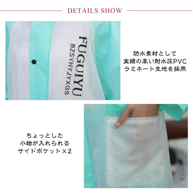 | 安心の防水素材を使用したスタイリッシュなレインスーツ【上下セット】 防水素材として実績の高い耐水圧PVCラミネート生地を採用 レインウェアとしてはもちろん、通勤、通学時などデイリーユースにも幅広くおすすめです。 ちょっとした小物が入れられるサイドポケット×2 雨除けの透明ツバ付きなので顔周りもカバーし、フード部分にはアジャスターが付いているのでより頭にフィットさせて風で飛ぶ心配もありません。 上下セットアップなので、ご自身のコーディネートに合わせて着用いただけます。 | |