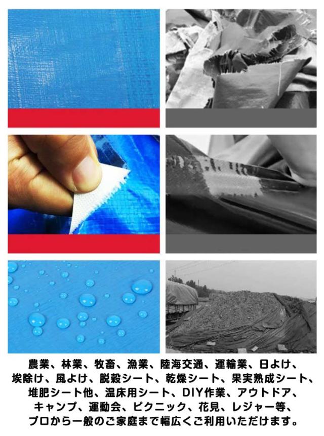 | 耐水圧の高い撥水屋外防水シートです。豪雨対策、水害対策に! 軽くて丈夫なPE素材で作られており、耐傷性・耐久性・耐摩耗性が良く、長寿命です。 柔らかく畳みやすいので、収納にも大変便利です。 両面に防水コーティングが施されており、耐候性に優れ、強度は抜群! 日光、雨、ホコリ、紫外線、雪、霜など、様々な過酷な環境下でも荷物をしっかりガードしてくれます。 便利なハトメは、防錆で頑丈なアルミ合金製です。使い勝手の良いロープ付きでさらに便利! 農業、林業、牧畜、漁業、陸海交通、運輸業、日よけ、埃除け、風よけ、脱穀シート、乾燥シート、果実熟成シート、堆肥シート他、温床用シート、DIY作業、アウトドア、キャンプ、運動会、ピクニック、花見、レジャー等、プロから一般のご家庭まで幅広くご利用いただけます。 | |