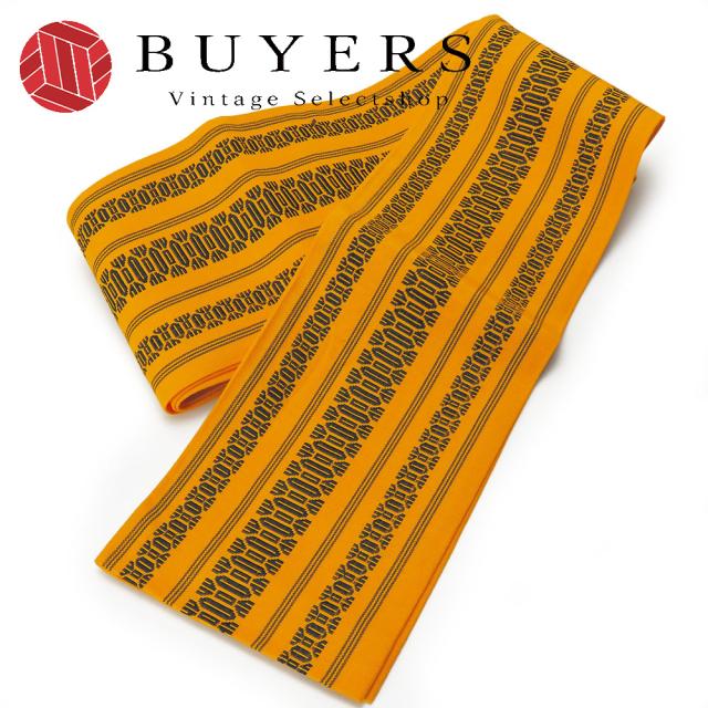 中古 半幅帯 袋帯 正絹 黄色 黒 献上柄 祭り帯 和装 呉服 和服 きもの レディース 女性