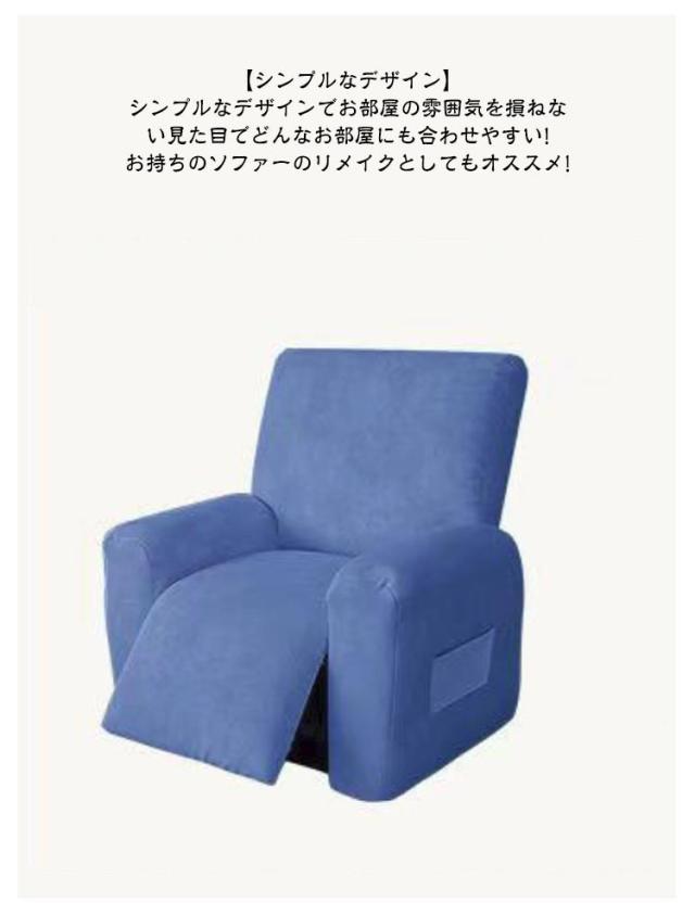 | リクライニングチェアカバー 1人掛け / 全6色 伸縮性抜群 サイドポケット 【シンプルなデザイン】 シンプルなデザインでお部屋の雰囲気を損ねない見た目でどんなお部屋にも合わせやすい! お持ちのソファーのリメイクとしてもオススメ! 【サイドポケット】 小物収納に便利なサイドポケット付きで本や・リモコンなどを入れるのにも便利です。普段使う携帯なとも入れておけるので物がなくなりやすい方にもオススメ!! 【ペット・子供のいるご家庭にもオススメ】 インテリアとしてはもちろん汚れ防止にも!ペットや子供の食べこぼし・落書きなどから大切な家具を守ってくれます。 【ぐーんと伸びる素材】 縦・横とよく伸縮するストレッチ素材でリクライニングチェアのパーツに良くフィットし脱着しやすい! ゴムバンド&弾性帯の二重滑り止め設計 【丸洗い可能】 汚れても洗濯可能でいつも清潔♪洗濯機で丸洗いできるから汚れても手間がかかりません。洗濯での色褪せがなくへたれにくい! 【汚れや傷から守ります】 汚れや傷から大切なソファーを守ってくれます。ゴミやペットの毛が付きにくい素材! ソファーに被せるだけで簡単に汚れ・傷から守れます! 【パーツごとに取り外し可能】 4つがバラバラになるので取付もしやすく汚れた際にはパーツごとに取り外せるので便利です。 【洗濯可能】 自宅で洗濯可能だから汚れても安心です。 【オールシーズン使用可能】 オールシーズン使用可能で季節問わずお使いいただけます。 | |