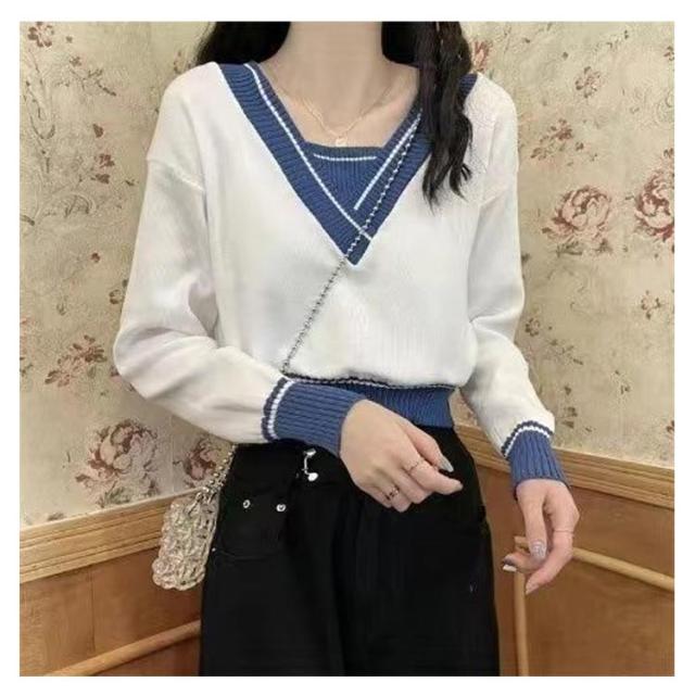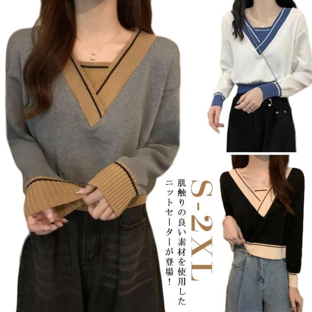 ニットTシャツ カットソー 秋 春物 レディース トップス ニットセーター 春服 シンプル 長袖セーター カットソー アウター 通勤 春 ショート丈 冬 ストレッチ 体型カバー 大きいサイズ ゆったり ショート丈 長袖ニット 無地 S 防寒 M L XL 2XL