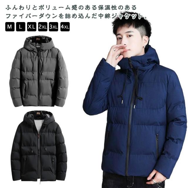 メンズ 中綿ダウン 中綿ジャケット 防寒 防風 ショート丈 中綿 ブルゾン ファイバーダウン フード付き 通学 保温 軽量 ジャケット 暖かい アウター カジュアル 通勤 中綿 おしゃれ 秋冬 冬服 冬物
