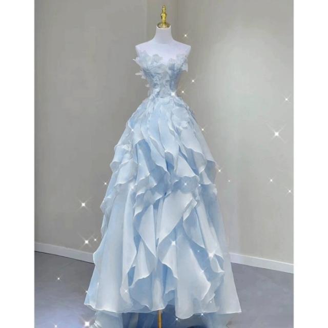 イブニングドレレス 水色 ブルー 着?せ シンプル ドレス ロングドレス ワンピース 大人気 エレガント 春 夏 秋 新作品