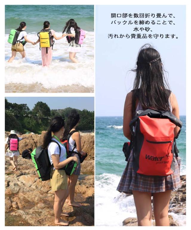 防水バッグ ドライバッグ プールバッグ バックパック リュックザック 防水リュック 防災用 25L 軽量 スクエアリュック 大型リュック 大容量 リュック ウォータープルーフ アウトドア 防水リュック 海 スキー スノボ
