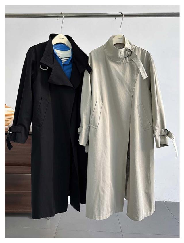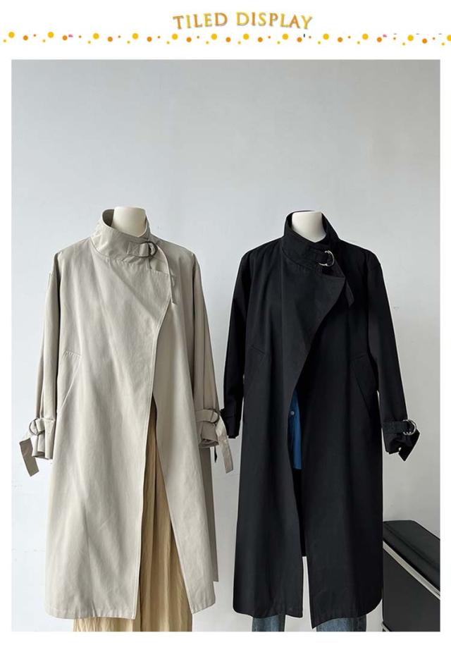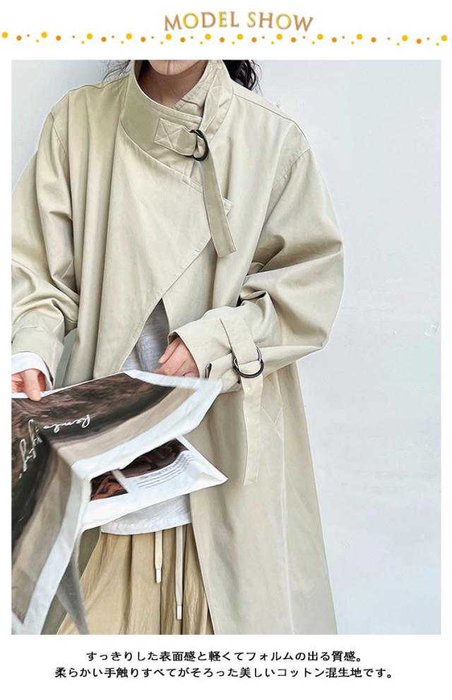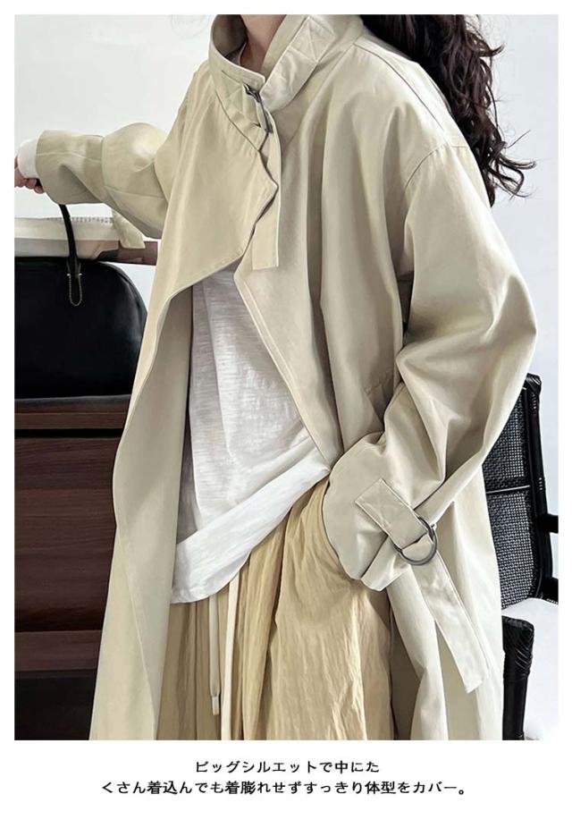 ロング モッズコート ロングコート トレンチコート アウター スプリングコート ガウンコート 秋 スタンドカラー 無地 長袖 春 上着 大きいサイズ スプリングコート 羽織り 前開き 体型カバー カジュアル ベージュ