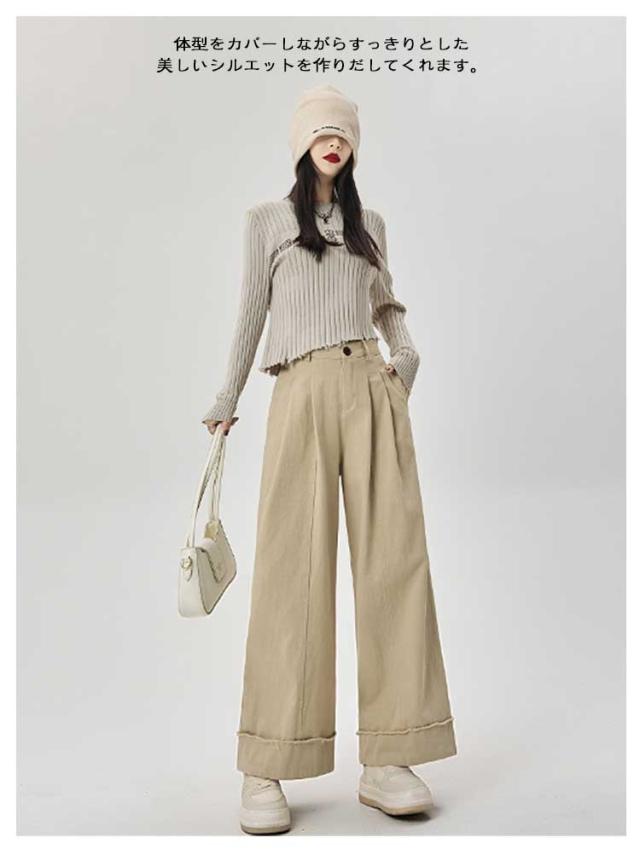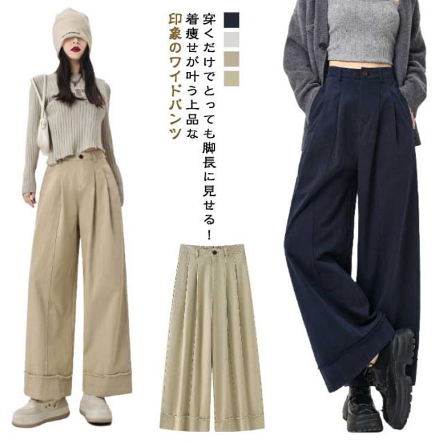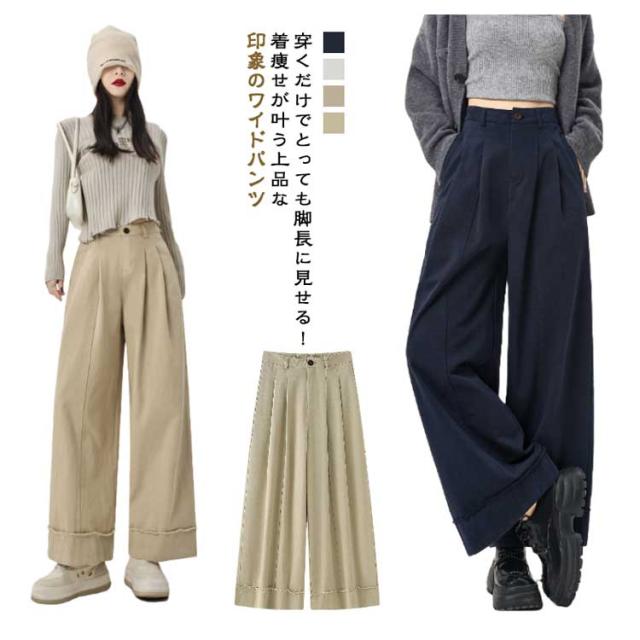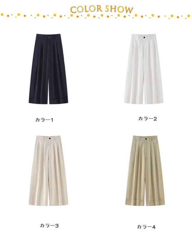 ワイドパンツ レディース フレアパンツ カラーパンツ ハイウエスト ワイドパンツ フロントボタン パンツ ワイドパンツ バックゴム ガウチョパンツ チノパンツ カジュアル ボトムス タックパンツ 脚長 送料無料 ホワイト ベージュ