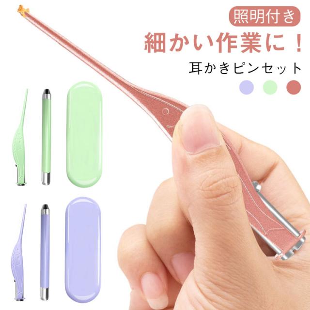 耳かきピンセット 光る耳かき 照明機能 光る ピンセット 耳かきピンセット 発光耳かき ステンレス 耳垢 ライト 介護用耳かき 子供耳かき 耳掃除 見やすい プレゼント 収納ケース付き