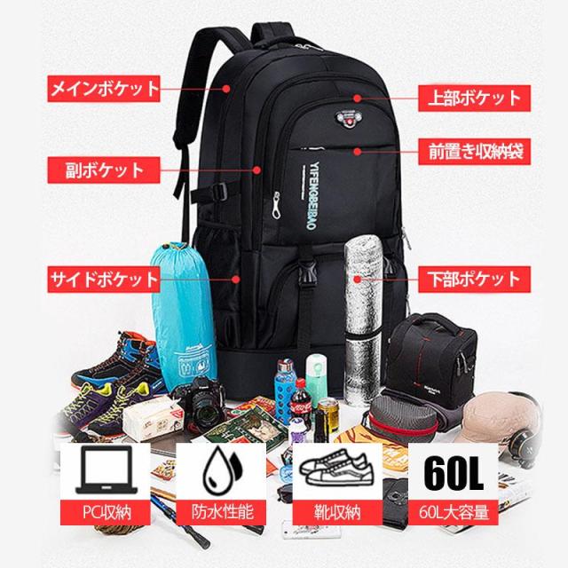 登山 リュック バックパック 旅行 カバン 大容量50L-60L 軽量 防水 防災リュック リュックサック 多機能 耐摩耗性 アウトドア 登山 旅行 防災 遠足 キャンプ 父の日 プレゼント