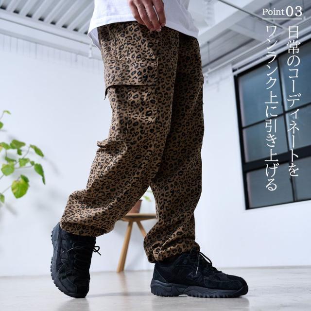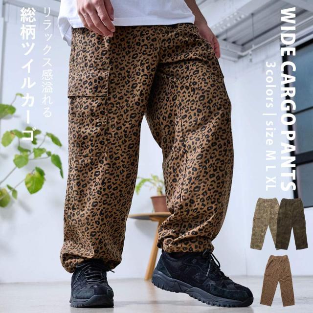 カーゴパンツ メンズ ブランド おしゃれ ボトムス セミワイド リラックス ストレートシルエット 大きいサイズ ゆったり カモ カモフラージュ レオパード柄 M L XL LL ロングシーズン 大人 20代 30代 40代 ユニセックス 男性 男 服 春 春服 夏 夏服 ファッション [3-243009]