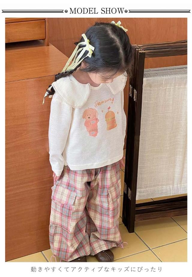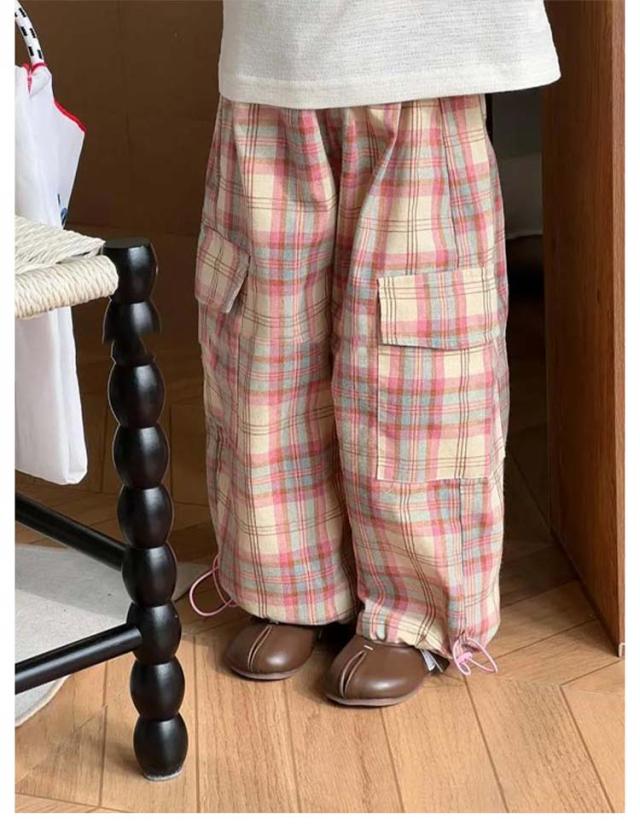 ゆったり 普段着 子供服 ズボン キッズ チェック柄 春秋冬服 カーゴパンツ 女の子 長ズボン 子供服 ストレートパンツ ウエストゴム パンツ ワイドパンツ ロングパンツ キッズパンツ 女の子 通学着 お出かけ着 80 90 100 110 120 130