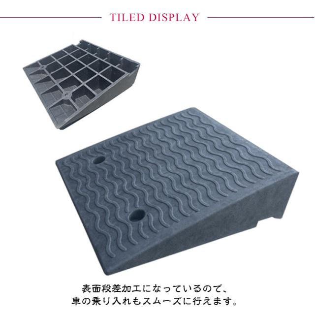 | 歩行者のつまづきや自転車・バイクの転倒を防止する段差プレートです。【ゴム製】【15cm】 表面段差加工になっているので、車の乗り入れもスムーズに行えます。 水が抜けやすい底面形状なので、雨等で流されにくくなっています。 ゴムを使用しているため車両乗り上げ時の衝撃が少なく静かで、滑り止め効果もあり、ソフトな使用感となっています。 駐車場入口やガレージ、玄関前など様々な場所に使われ、車や自転車、ベビーカー、車椅子、台車などの移動をスムーズにできます | |