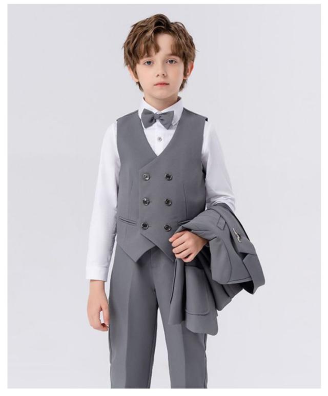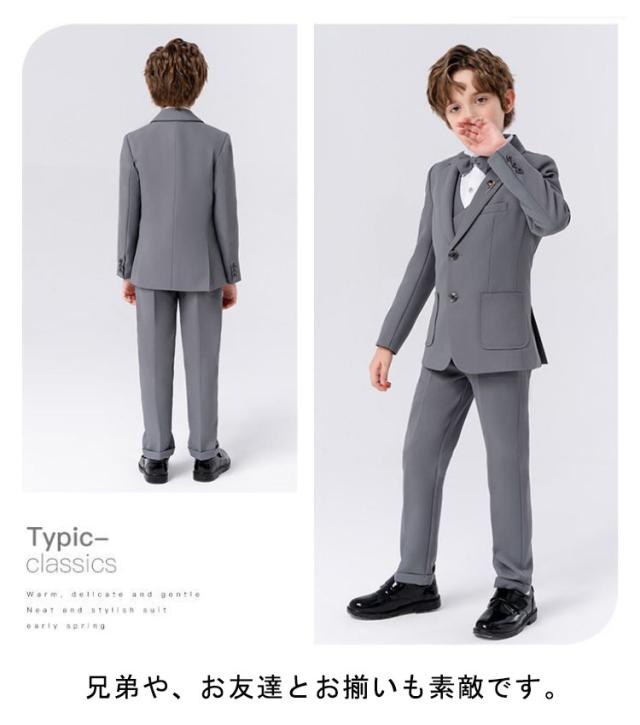 | 90-170cm!ジャケット×ベスト×シャツ×パンツ×蝶ネクタイ×ブローチのフォーマルスーツ6点セット、お子様のお洒落さと機能を重視したデザインで、結婚式、入園式、お祝いなどのフォーマルシーンはもちろん、発表会の衣装としても! やんちゃな僕も英国紳士のようにスマートに大変身。 サイズ展開は赤ちゃんからお兄さんまで。 兄弟や、お友達とお揃いも素敵です。 | |