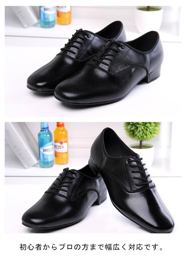 メンズ 革 ラテンダンスシューズ ダンス用品 シューズ 室内履き シューズ 室内用 室外用 男性 社交ダンス 靴 ダンスシューズ 2.5cmヒール 社交ダンスシューズ 初心者 モダンシューズ ダンスシューズ レッスン 24cm-28cm ブラック