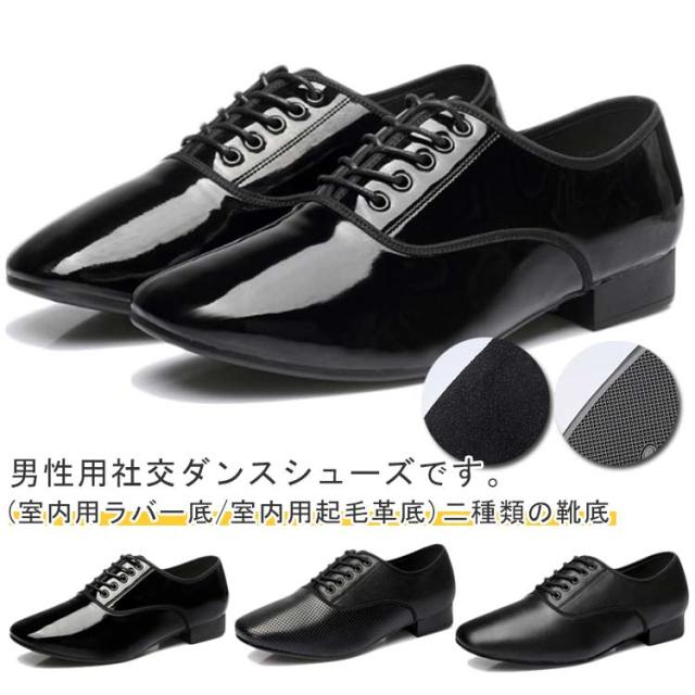 ダンスシューズ シューズ 室内用 メンズ 男性 光沢 革 靴 室外用 室内履き シューズ 社交ダンス 艶消し 2.5cmヒール 社交ダンスシューズ ラテンダンスシューズ ダンス用品 初心者 モダンシューズ ダンスシューズ レッスン 24cm-28cm ブラック
