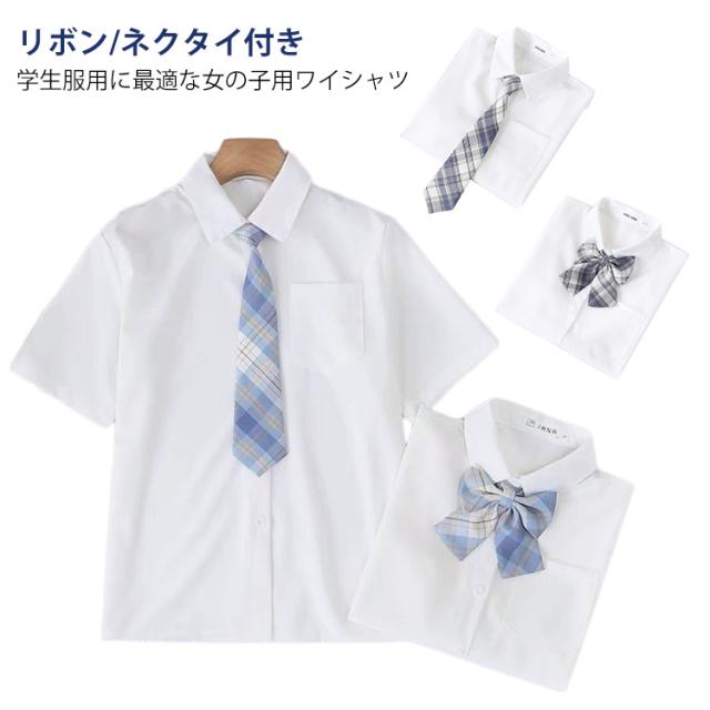 リボン付き スクールウェア スクールシャツ 女の子 制服 女子高生 トップス レディース スクールシャツ 学生服 ワイシャツ 入学式 卒業式 学生 ネクタイ付き 通学 女子 白シャツ 中学生 高校生 小学生 半袖 スクールブラウス 白 ホワイト