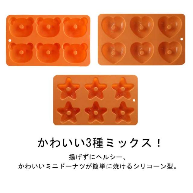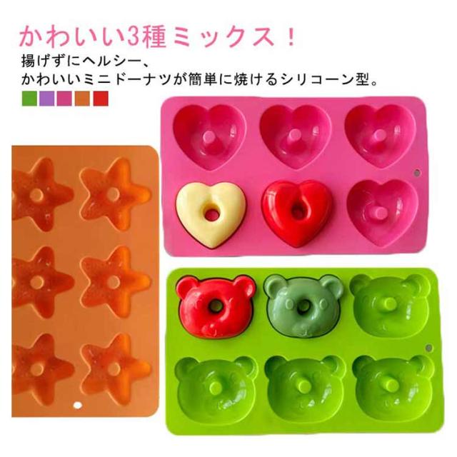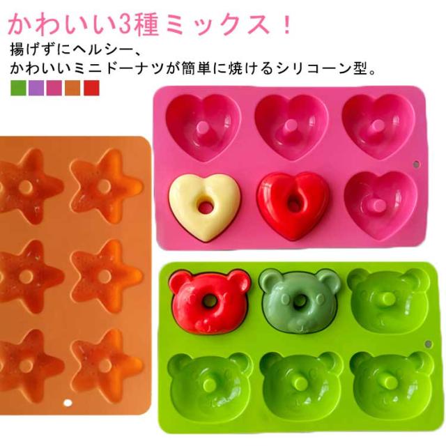シリコン ドーナツ型 型 ミニドーナツ ケーキ型 かわいい星/ハート/熊お菓子型!3個セット シリコン製 6個取り 焼きドーナツ型 オーブン 製菓道具 焼き型 耐熱シリコン ヘルシー かわいい