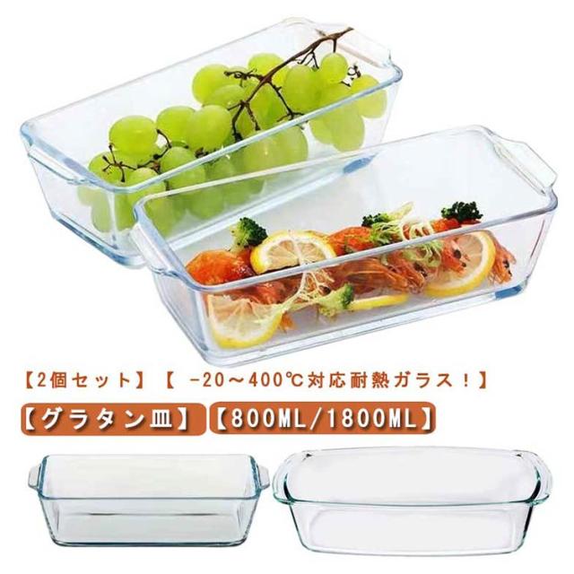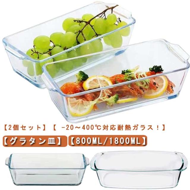 | 【2個セット】【 -20〜400℃対応耐熱ガラス!】【グラタン皿】【800ml/1800ml】 電子レンジやオーブンで使用できる耐熱ガラスです。 グラタンやケーキなどにオススメです。 オーブンで焼いたケーキやメイン料理は、クリアなガラスなのでそのままテーブルウェアとしても使えます 表面が滑らかなので、油汚れなども簡単に落ち、お手入れも楽々! ガラス製なので長い期間使っていても焦げ付きや汚れが付かずにきれいに使える 電子レンジ、オーブン、食洗機対応 | |