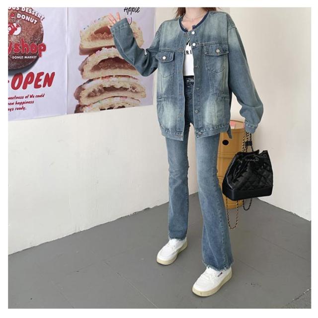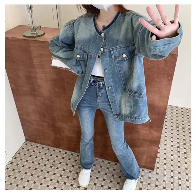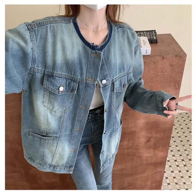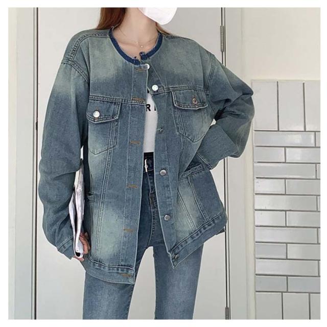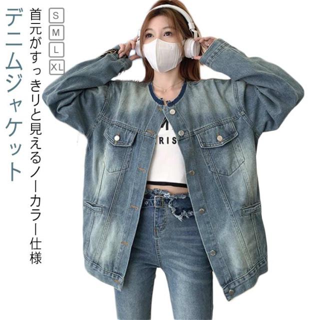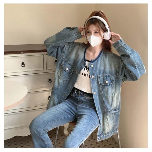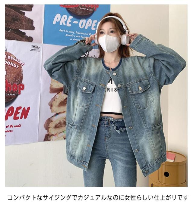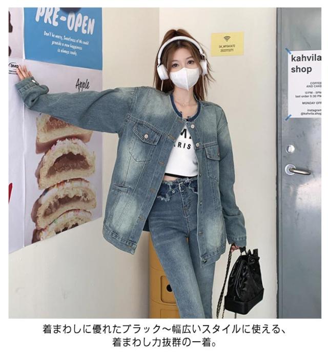 ジャケット デニムジャケット ノーカラー 長袖 レディース ジャケット ノーカラー ジャケット ショート ジージャン ジージャン デニム スリム ショート丈 アウター ライトアウター 羽織 カットオフ ゆったり 大人 トップス 韓国 ファッション アウター
