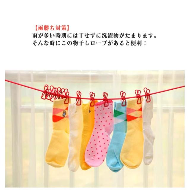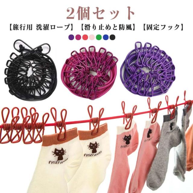 洗濯ロープ キャンプ 2個セット 物干しロープ キャンプ用洗濯干し 旅行 12個クリップ付き 防風 弾力 伸縮 携帯便利 旅行 旅行用 室内 屋外 梅雨