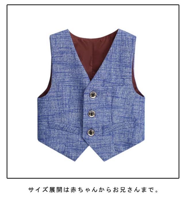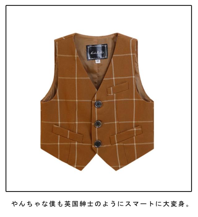 | 90-170cm!おしゃれなふぉベスト!お子様のお洒落さと機能を重視したデザインで、結婚式、入園式、お祝いなどのフォーマルシーンはもちろん、発表会の衣装としても! やんちゃな僕も英国紳士のようにスマートに大変身。 サイズ展開は赤ちゃんからお兄さんまで。 兄弟や、お友達とお揃いも素敵です。 | |