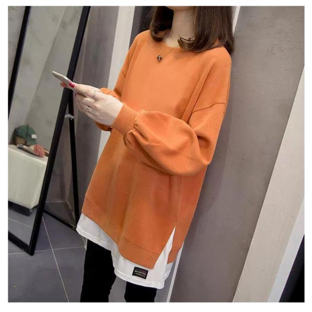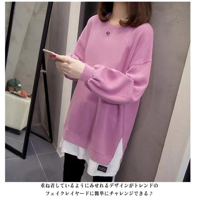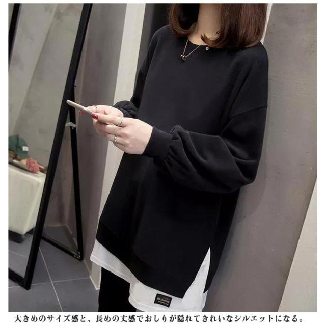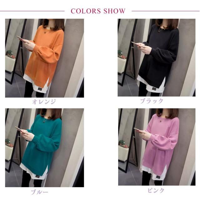 トレーナー スウェット トレーナー 春秋冬 ロング丈 長袖 レイヤード ミドル丈 スリット クルーネック レディース 無地 シンプル 大きいサイズ M-4XL