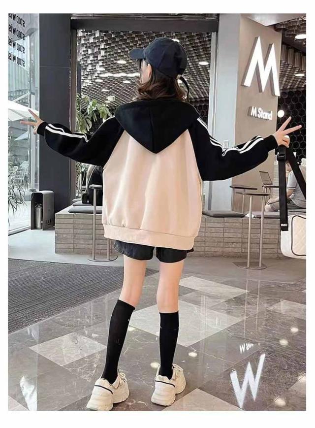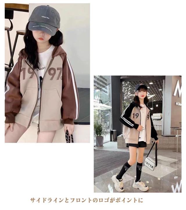 ジャケット スタジャン パーカー キッズ 女の子 男の子 フードパーカー ジップアップパーカー コットン ライン入り 長袖 ジャンパー フード付きパーカー アウター ブルゾン バイカラー 子供服 女の子秋 ジップパーカー 女の子 ジュニア サイドライン 女児 秋