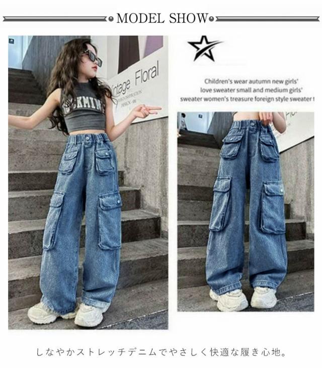キッズ デニム 女の子 おしゃれ ズボン 子供服 春 保育園 カーゴパンツ ボトムス かわいい ロングパンツ 男の子 こども パンツ 服 秋冬 中学生 秋 子ども 冬 園児 小学生 韓国ファッション デニム パンツ ダボパン ジュニア パンツ 無地 可愛い 洋服