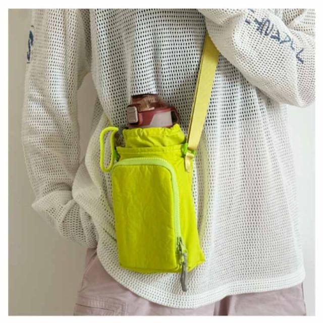 | マグボトルや水筒、ペットボトルが入るマグボトルケース。 ストラップは長さの調節ができるので肩掛け・斜め掛け出来ちゃいます。 ドローコード付きの開口部は大きく開くので、ボトルの出し入れがしやすいのも嬉しいポイント。 フロントのポケットには小物を入れられます。 水を弾く素材で、汚れにも強くお手入れ簡単。 | |
