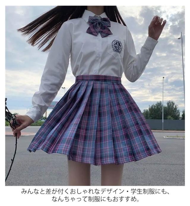 | 3点セット 配色チェック柄が元気な印象のスカートです。 シンプルなデザインなのでオンでもオフでも着回しは自在。 ポリエステル・綿でしっかりした素材。家庭洗濯が可能です。 着心地が良く、オールシーズン使えるのが嬉しいね。 みんなと差が付くおしゃれなデザイン・学生制服にも、なんちゃって制服にもおすすめ。 年齢を選ばず、中学生 女子高生の制服にも、普段使いにもお使いいただけます! | |