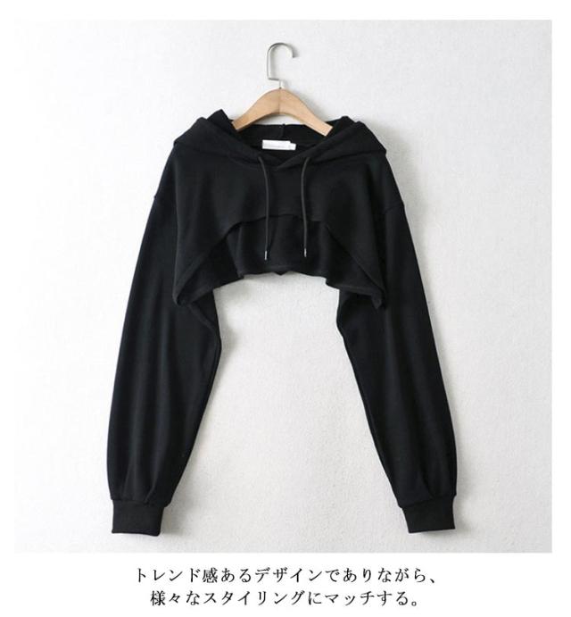 パーカー レディース プルオーバーパーカー へそ出し フード付き トップス レイヤード パーカー 無地 長袖 クロップド丈 ショート丈 パーカー 重ね着 お洒落 ゆったり ダンス衣装 韓国系 春 秋 冬