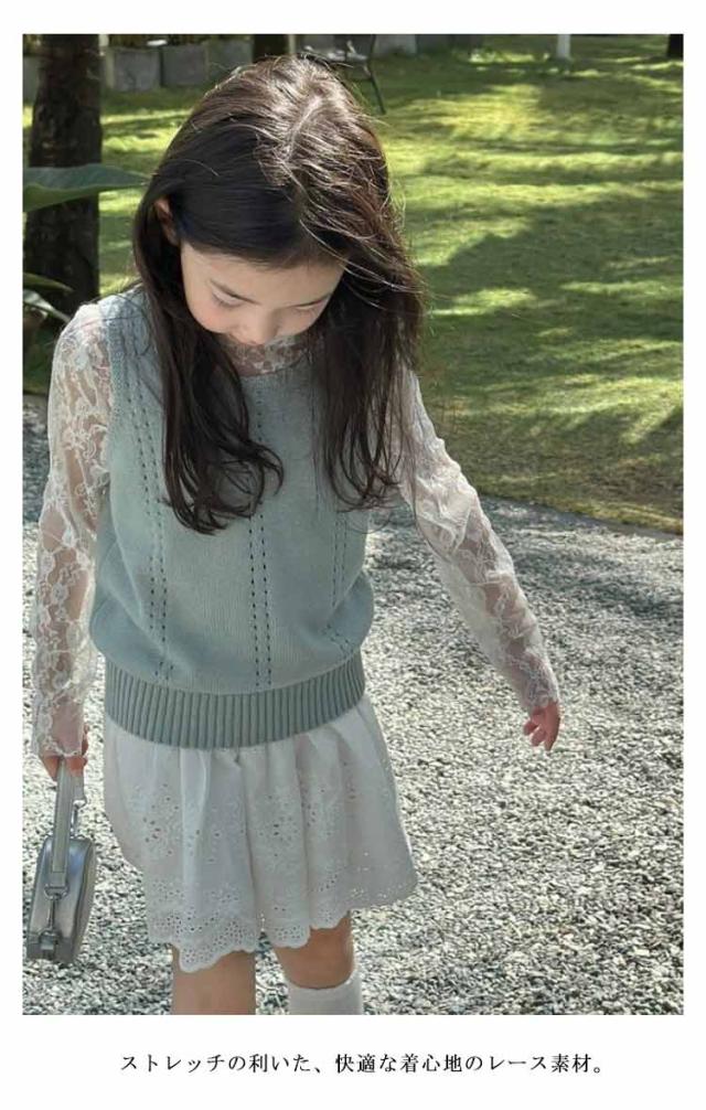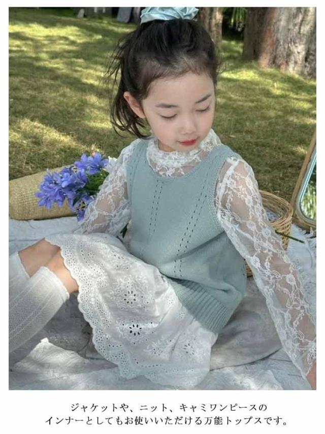 女の子 レース 重ね着 キッズ 夏 UVカット 総レース 花柄レース ブラウス インナー 透け感 トップス トップス 150 シースルー タートルネック プルオーバー 90 ストレッチ レイヤード レースカットソー 韓国ファッション 100 春 110 120 130 140 重ね着 160cm