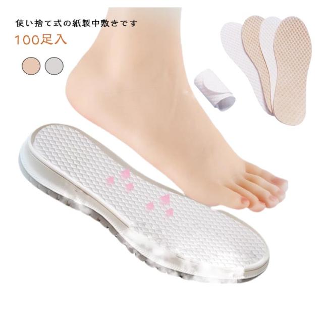 使い捨てインソール 吸汗 100足セット 紙製中敷き 革靴 対策 消臭 ブーツ ヒール 使い捨てインソール パンプス 中敷き 男女兼用 使い捨て 素足 取り替え 清潔 スニーカー 夏 足の臭い 予防 通気性 滑り止め ビジネス 会社 白 ベージュ