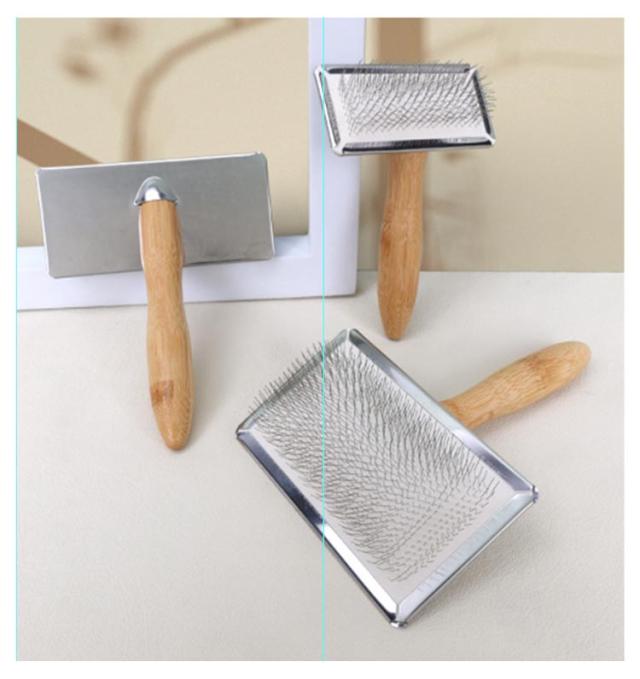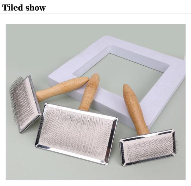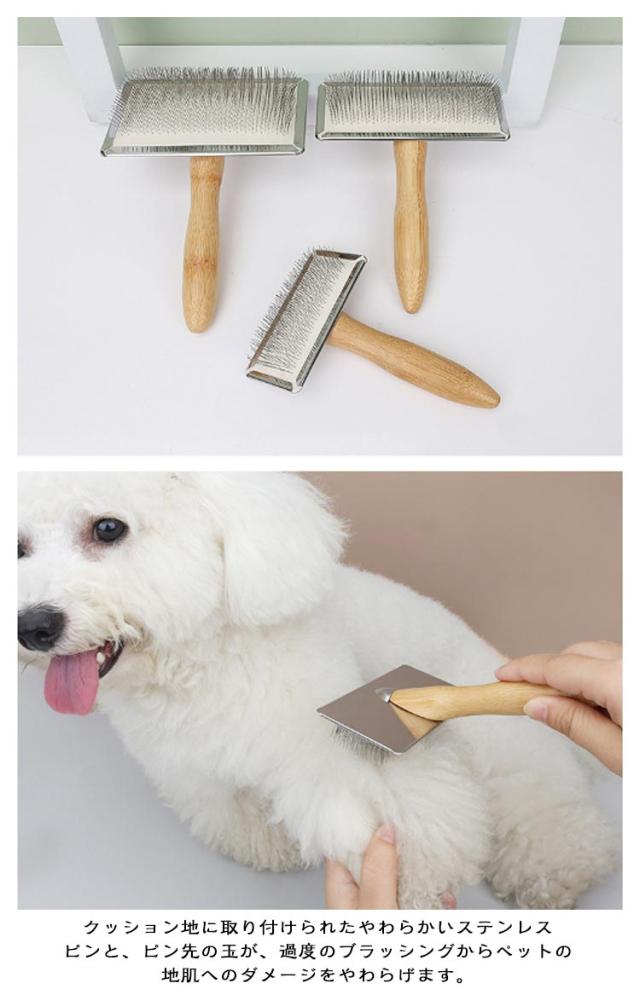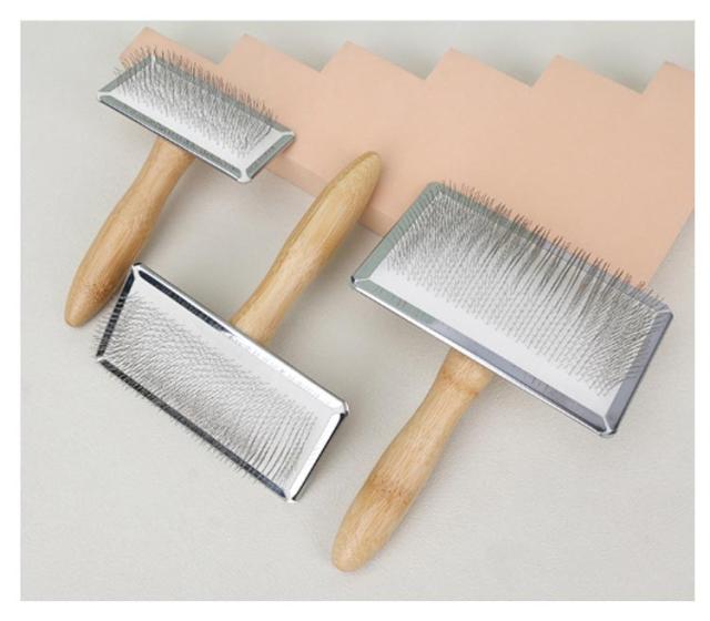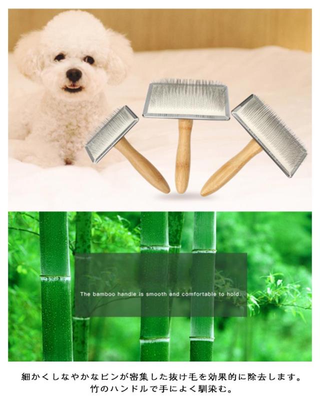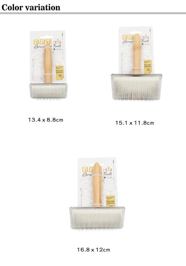 | ステンレス製スリッカーブラシ ペットの抜け毛取りや顔周りのお手入れに 選べる3サイズ! 高密度のピンが被毛の奥の抜け毛を簡単に除去します。 クッション地に取り付けられたやわらかいステンレスピンと、ピン先の玉が、過度のブラッシングからペットの地肌へのダメージをやわらげます。 長毛、短毛、あらゆる毛並みになじみ全体をふっくらと仕上げます。 細かくしなやかなピンが密集した抜け毛を効果的に除去します。 竹のハンドルで手によく馴染む。 | |