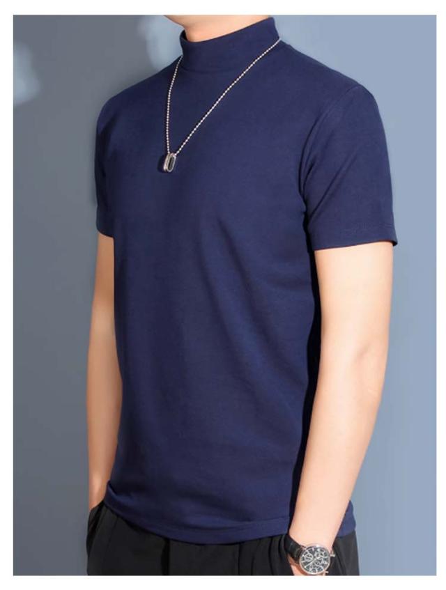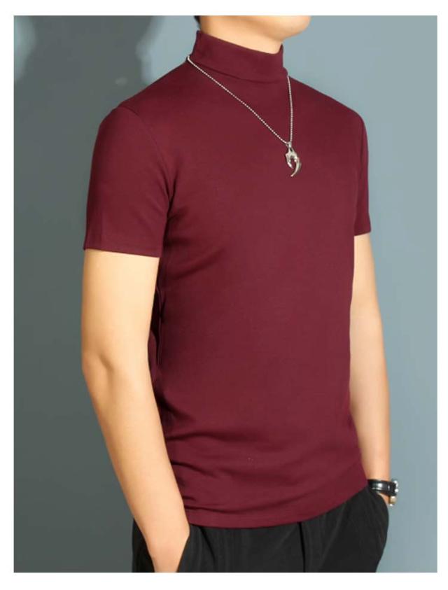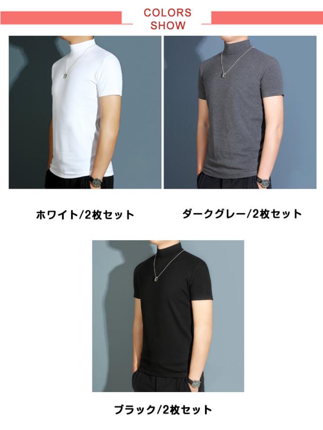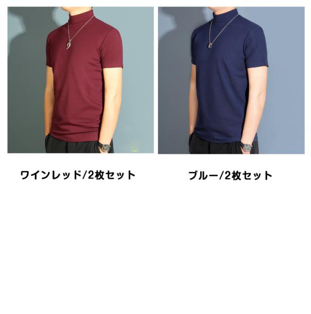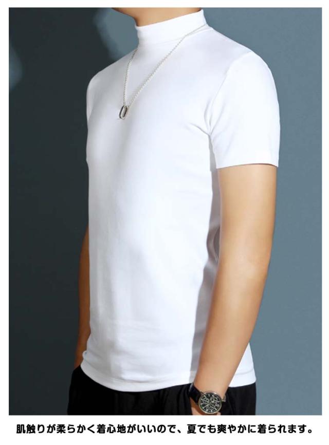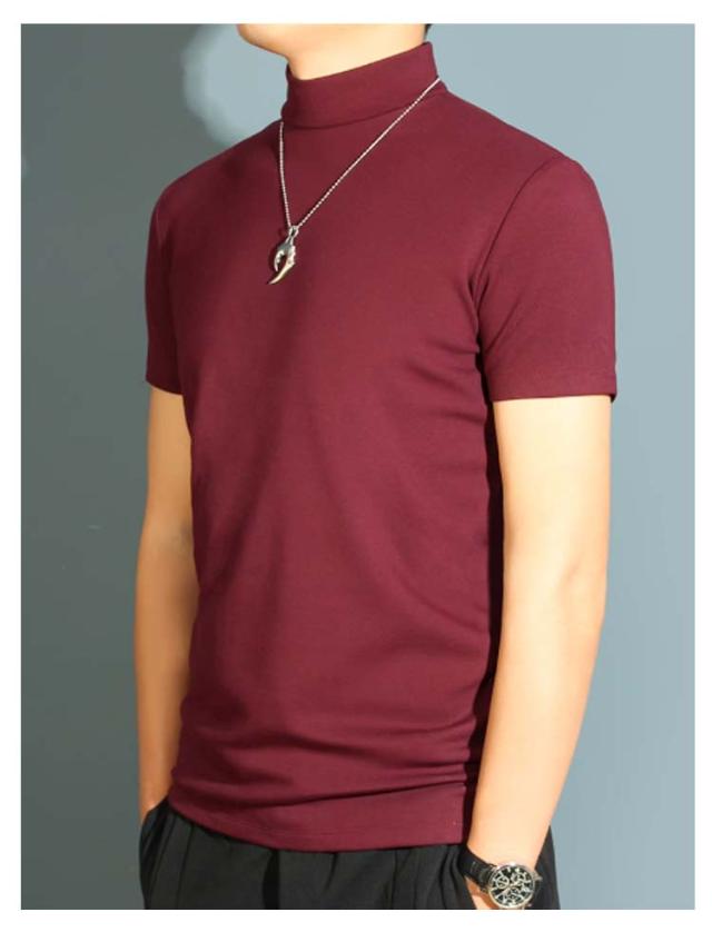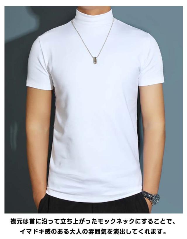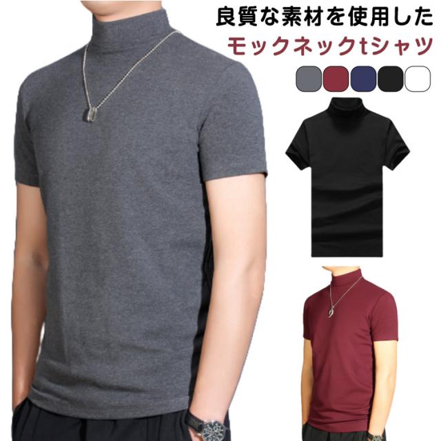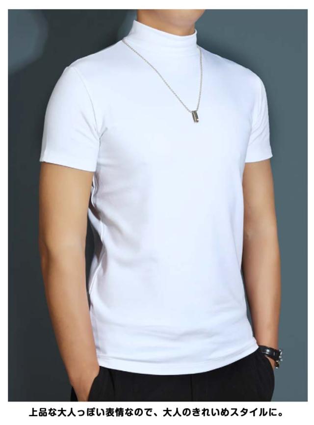 メンズ 大きいサイズ ティーシャツ ハイネックtシャツ ハイネック 無地tシャツ Tシャツ ハイネック 半袖 スリム 春夏 ストレッチ カットソー トップス 無地 ゴルフウェア カジュアル 半袖tシャツ シンプル 重ね着 大人 男性 シンプル