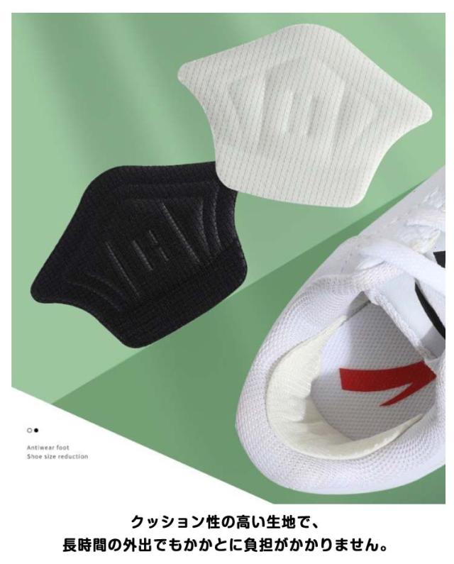 | かかと抜けを防ぐ!スニーカー用の靴擦れ防止パッド かかとを柔らかく包み込み、ぴったりとしたフィット感で快適な履き心地♪ 裏面の粘着テープでピタッと貼り付けできてズレにくい! クッション性の高い生地で、長時間の外出でもかかとに負担がかかりません。 通気性に優れた素材を採用しており、長時間の使用でも蒸れにくいです。 靴の種類やサイズに合わせてカットしてご使用いただけます。 | |