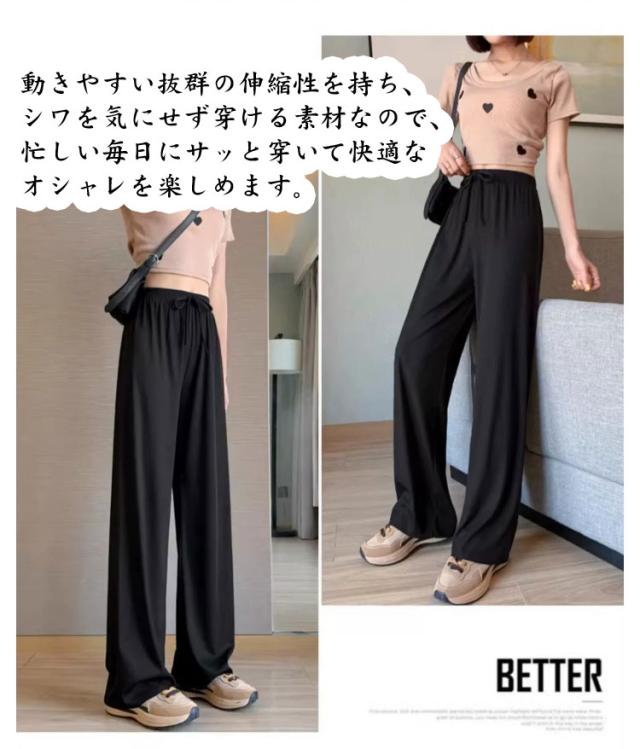 リラックスワイドパンツ 軽量 リラックスワイドパンツ 秋 涼感 ワイドパンツ レディース 無地 ロング丈 ルームウェア イージーパンツ 9分丈 春夏 大きいサイズ きれいめ シンプル 美脚 おしゃれ 脚長効果 無地 涼しい ズボン ゆったり 大人女性 ウエストゴム