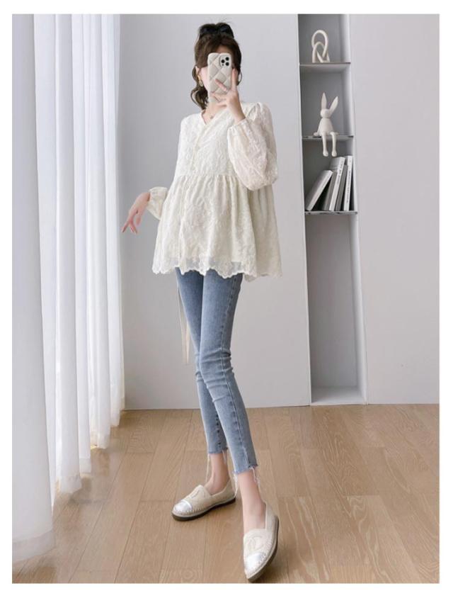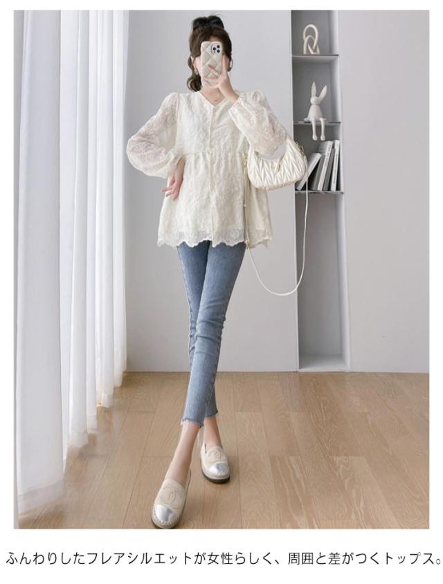 | レーシーデザイン×バルーン袖で今っぽさをUPレースブラウス。 ほどよいAラインが今っぽい!いつものコーデにプラスするだけでトレンドコーデが完成。 長めの着丈なので着こなしながらさりげない体型カバー効果も魅力。 ふわっとしたシルエットとバルーン仕様のスリーブで柔らかくく女性らしい雰囲気。 袖口はシャーリングゴム仕様で腕まくりもスムーズにできます。 サラっと柔らかな生地は肌触りがよく、風通しのよいゆったりサイズで涼しく過ごせる。 スキニーパンツやレギンスと合わせるだけで、おしゃれコーデの完成♪ マタニティウェアとしてもおすすめ◎ | |