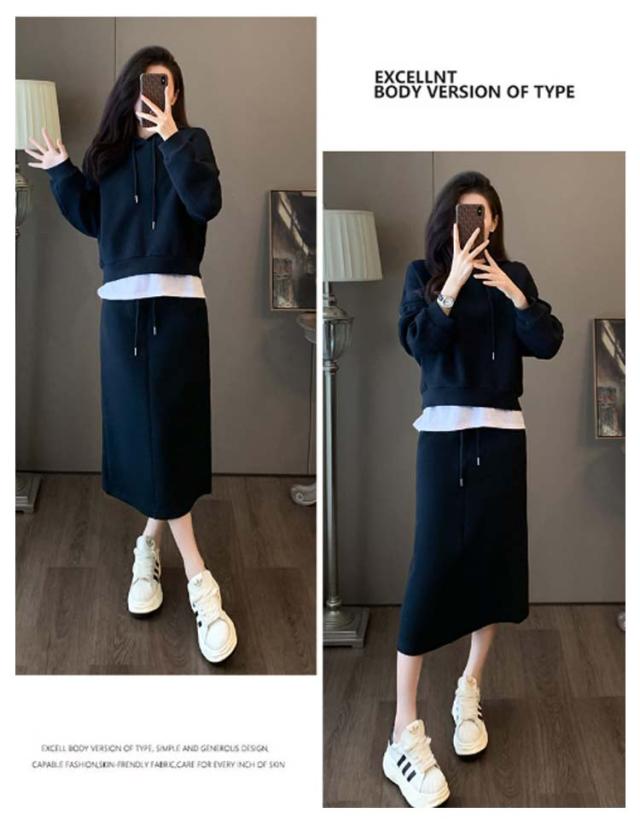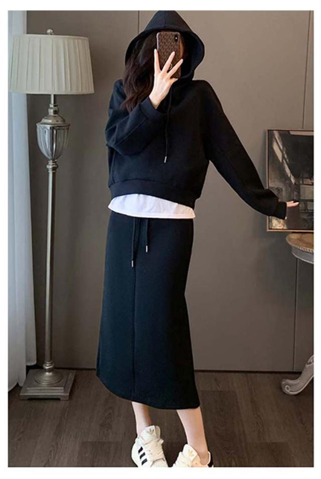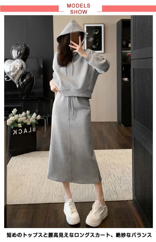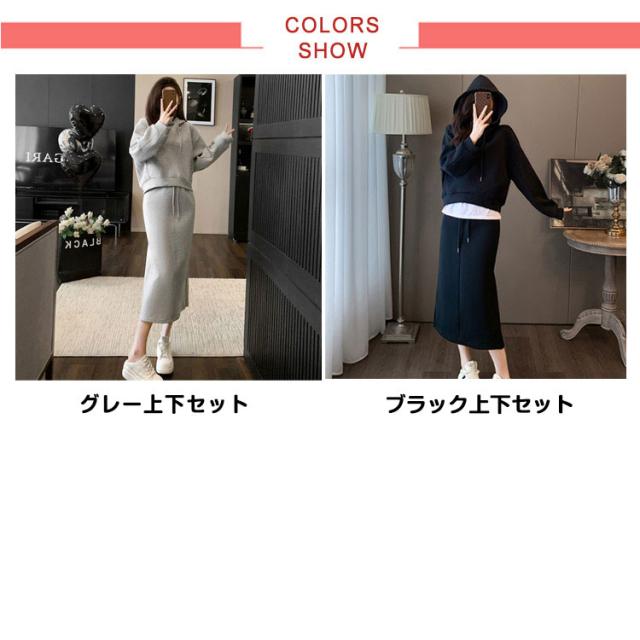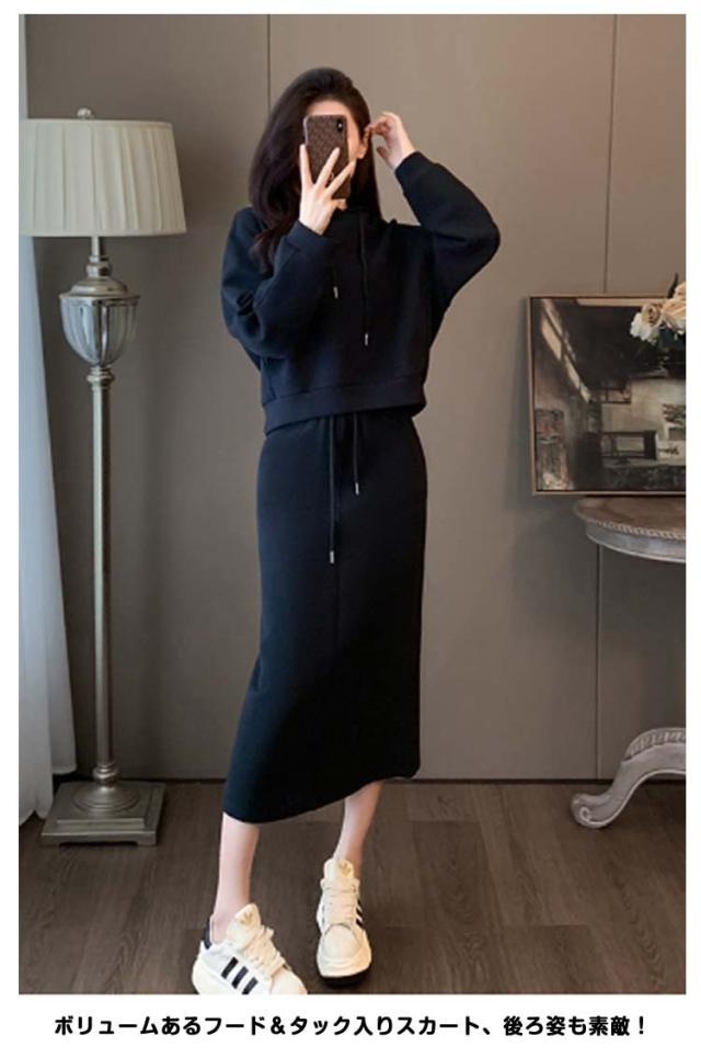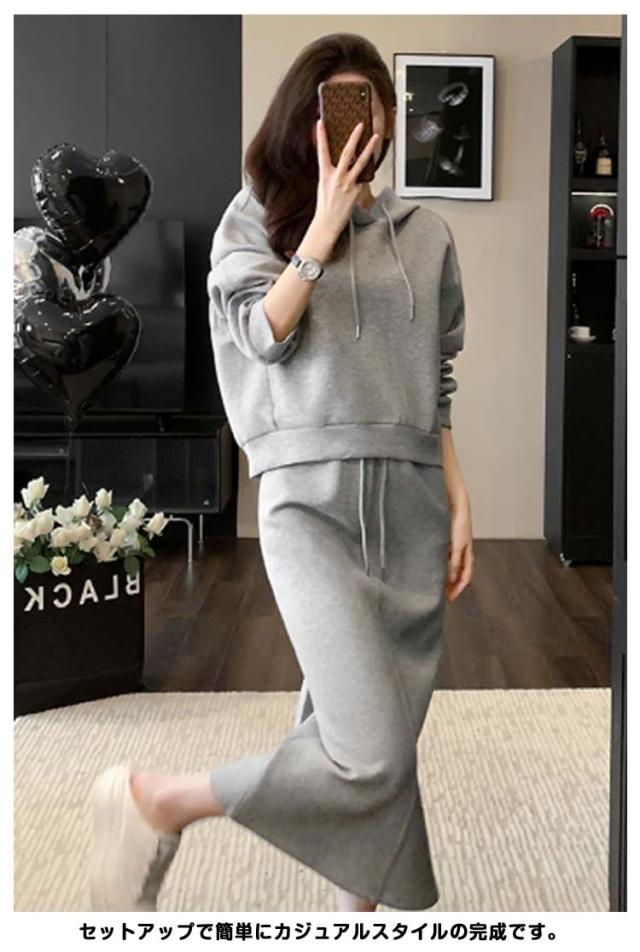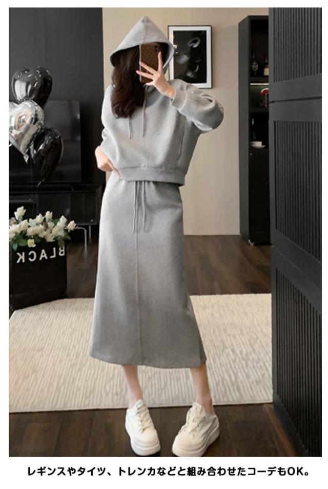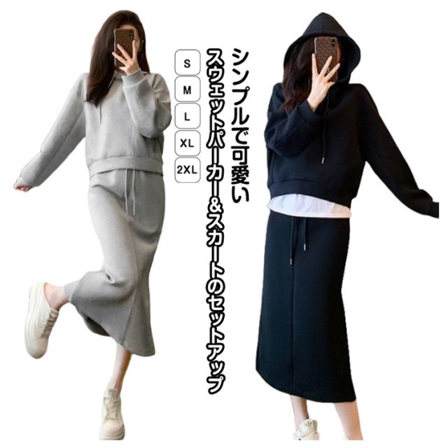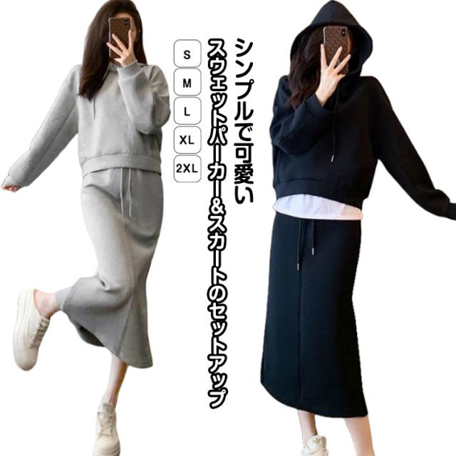 きれいめ スウェット上下セット プルオーバー スウェットスカート フード付き Aライン スカート スウェット上下セット パーカー カジュアルセットアップ レディース 長袖 スウェット ロングスカート 春秋 フード付きパーカー 無地 韓国風 大きいサイズ