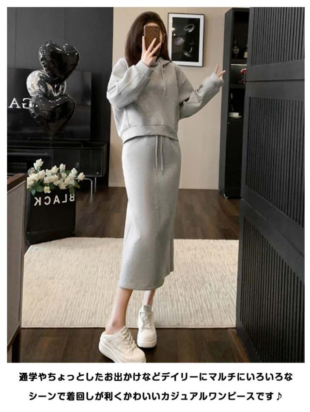| シンプルで可愛いスウェットパーカー&スカートのセットアップ しっかりした生地を採用、美シルエットをキープ♪ 短めのトップスと腰高見えなロングスカート、絶妙なバランス◎ ボリュームあるフード&タック入りスカート、後ろ姿も素敵! レギンスやタイツ、トレンカなどと組み合わせたコーデもOK。 セットアップで簡単にカジュアルスタイルの完成です。 通学やちょっとしたお出かけなどデイリーにマルチにいろいろなシーンで着回しが利くかわいいカジュアルワンピースです♪ | |