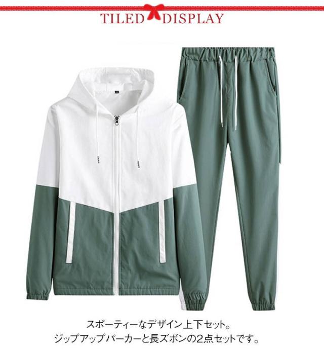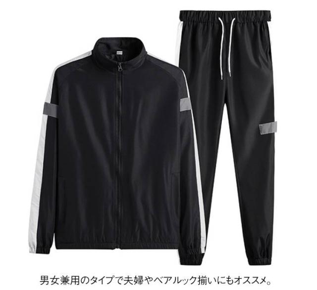 | スポーティーなデザイン上下セット。 ジップアップパーカーと長ズボンの2点セットです。 トレンド感あるラインとバイカラー切り替えがおしゃれ。 フィットネス・ダンス・ルームウエアにも年中活用できます。 男女兼用のタイプで夫婦やベアルック揃いにもオススメ。 | |