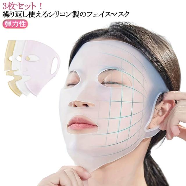 | 3枚セット!繰り返し使えるシリコン製のフェイスマスク 伸びやすくフィットするのでパックがずれにくくなります◎ お家ではもちろん旅行・出張先などでも手軽にお使い頂けます。 | |