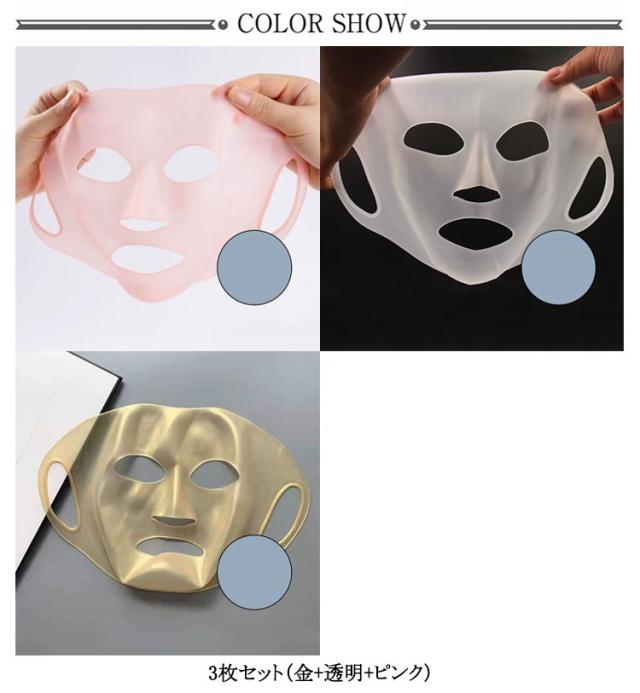 シリコンマスク 耳掛け フェイスマスク 顔パック シートマスクカバー ズレ落ちにくい 3枚セット(金+透明+ピンク) 柔らかい 弾力性 乾燥対策 美容 送料無料 マスク 顔パック シリコン フェイスマスク 顔パック