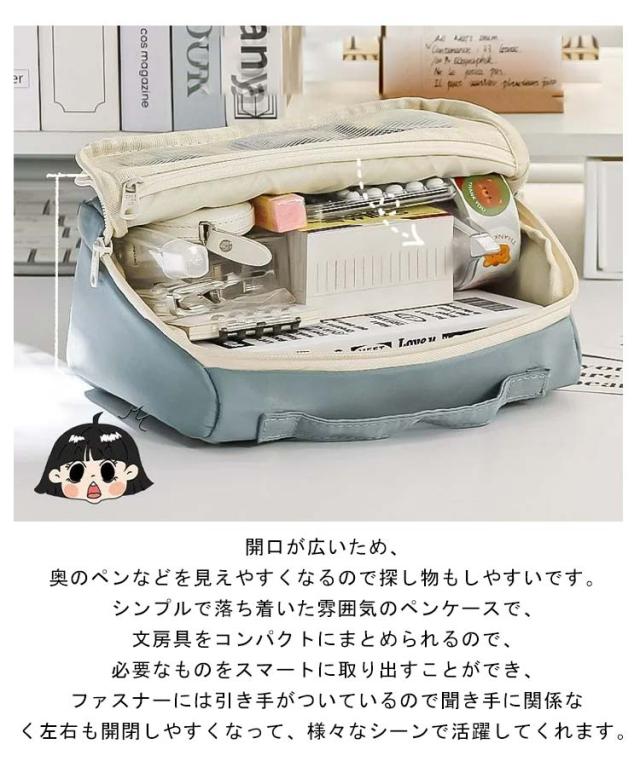 | 大切な手帳と、お気に入りな文房具を可愛く持ち運べるペンケース! しっかりした素材で作られた、耐久性が高い、長くご愛用できます。見た目がおしゃれで高級、快適な手触りと優れる耐久性、中に入れた物をちゃんと守ることが出来ます。 開口が広いため、奥のペンなどを見えやすくなるので探し物もしやすいです。 シンプルで落ち着いた雰囲気のペンケースで、文房具をコンパクトにまとめられるので、必要なものをスマートに取り出すことができ、ファスナーには引き手がついているので聞き手に関係なく左右も開閉しやすくなって、様々なシーンで活躍してくれます。 バッグはシンプルで軽量で、収納整理にも便利です。大容量、ペン収容量は100本程度で、消しゴム、付箋、ハサミ、定規、メジャー、修正テープや大きめの手帳や電卓などの小物もたっぷり入れることができます。 女性には化粧ポーチとしても有効活用可能です。PC周辺機器小物の収納、イヤホン、スマートウォッチ、充電ケーブル、と常備薬や目薬、塗り薬などちょっとした小物入れても使用できます。 軽量で耐久性のある素材は、ペンシルケースのほこり、裂け目、引っかき傷、摩耗に対する強力な保護を提供します。 自宅、学校、オフィス、学園祭、イベント、パーティーの装飾、コレクションなど様々な場合に活躍します。子供、家人、恋人、重要な友達、同級生などの誕生日または新年の贈り物にも適しています。 | |
