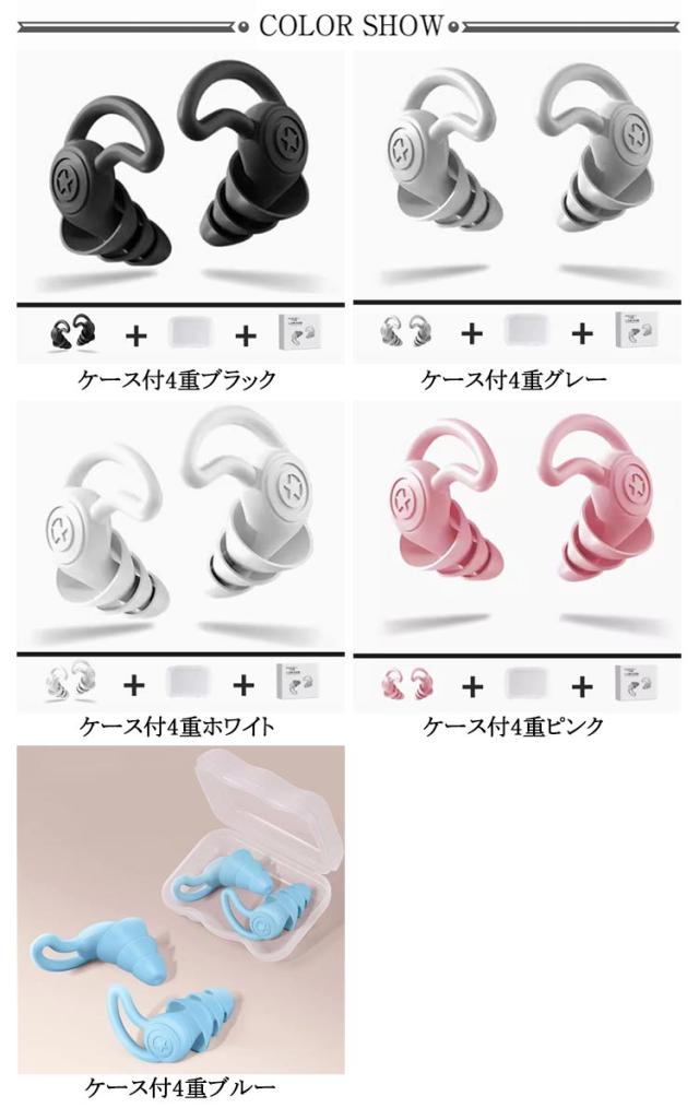 | 左右セット/ケース付/4重 ・人間工学に基づいた画期的なデザインで角度の付いた特殊形状の耳栓です。 ・外耳道の形にしっかりフィットし睡眠中に装着しても抜け落ちません。 ・環境保護、無毒性のナノシリコーン素材を採用し柔軟性抜群です。 ・長時間装着しても耳が痛くなりません。また良好な通気性により、耳が詰まるような不快感もありません。 ・汚れても水洗いすれば清潔に再使用でき、衛生的です。 ・長期間使い続けても弾力が落ちることもなく繰り返し使用可能です。 | |