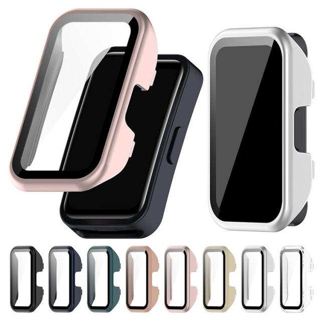 HUAWEI Band 10 ケース Band10 Aluminum Edition カバー 液晶面強化ガラス 光沢/マット 全面保護 液晶保護ケース ファーウェイ バンド10 単色/クリア フィルム一体 ハードケース