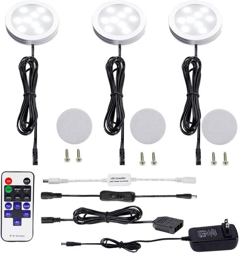 AIBOO LED アンダー キャビネット パック ライト 3 ランプ キット RF リモート コントロール調光ホーム キッチン カウンター照明 (昼白色 6000 K)
