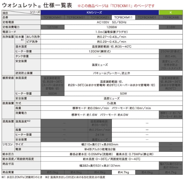 TOTO 温水洗浄便座 ウォシュレット TCF8CKM11 (#NW1 #SC1 #SR2) KMシリーズ 瞬間式 (きれい除菌水/プレミスト/おまかせ節電) 暖房便座 リモコン付き 掃除かんたん トートー