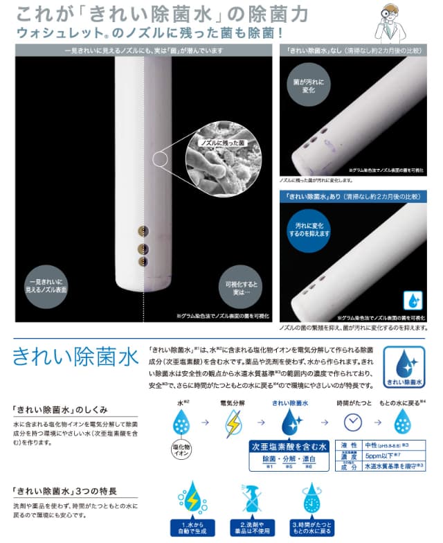 ・ウォシュレットご使用前後に、水で勢いよくノズルを自動で洗浄します。