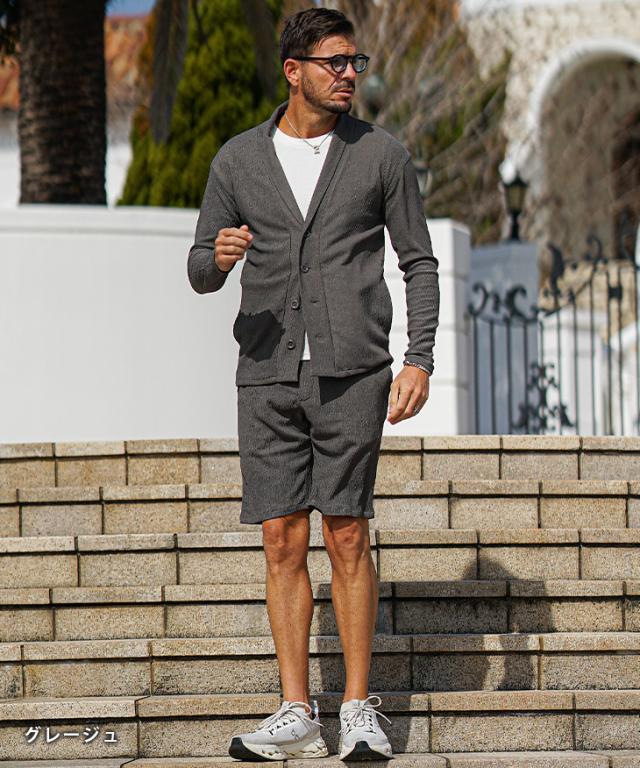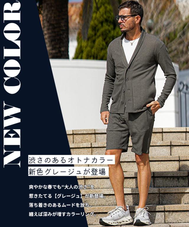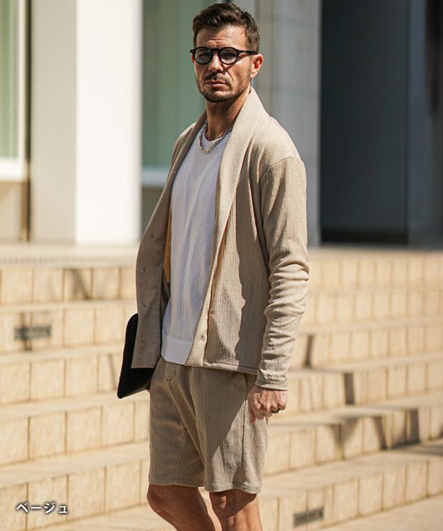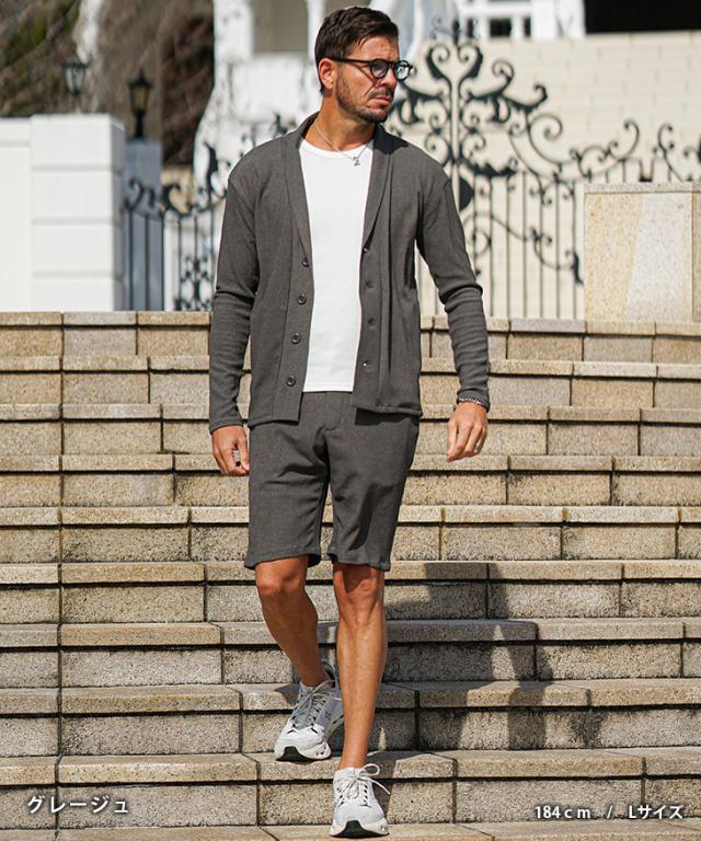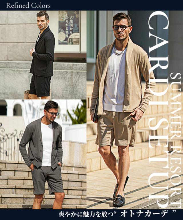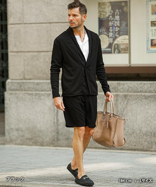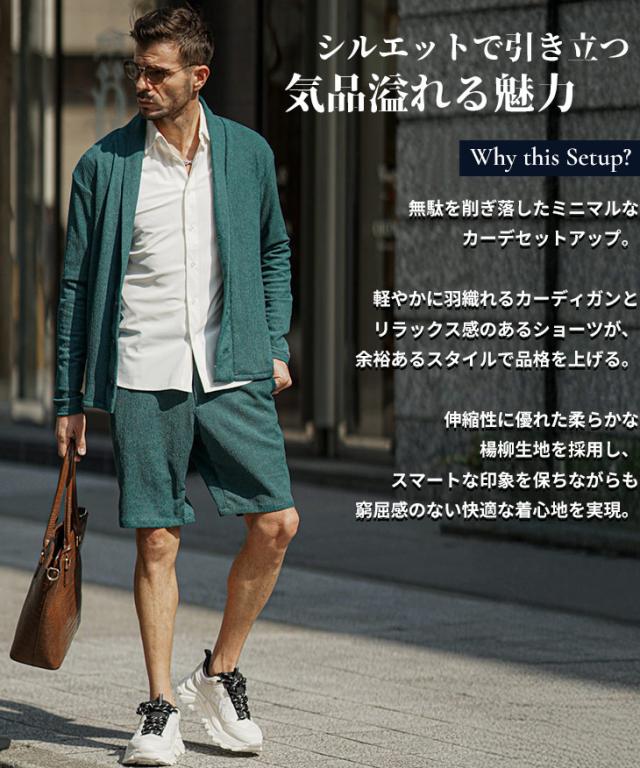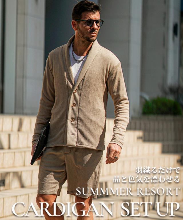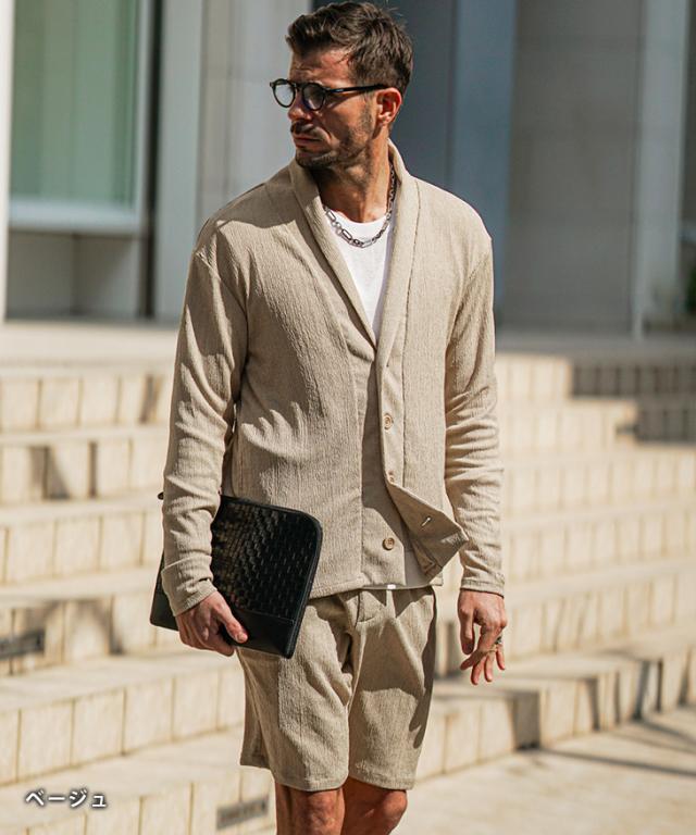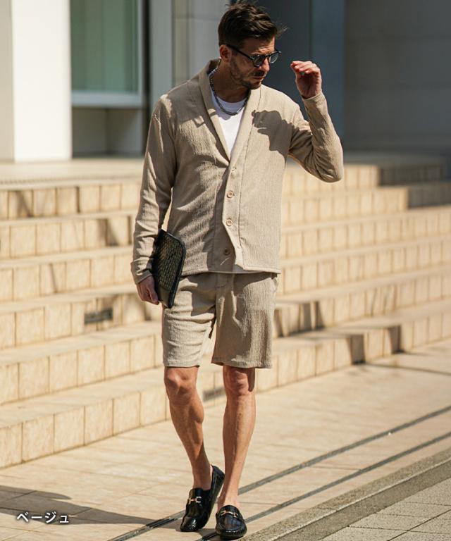 上下セット メンズ 夏 セットアップ メンズ ブランド 楊柳 ショールカーディガン メンズ 春 ハーフパンツ メンズ 夏 冷房対策 黒 ベージュ 涼しい 薄手 薄い 春 春服 春物 春夏 メンズファッション リゾート サーフ系 ちょいワル お兄系