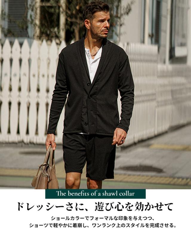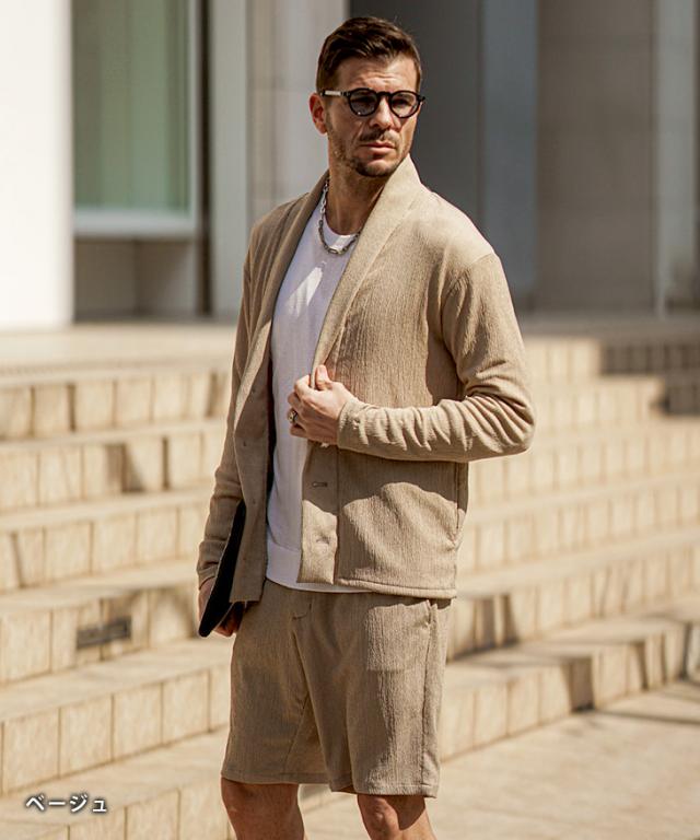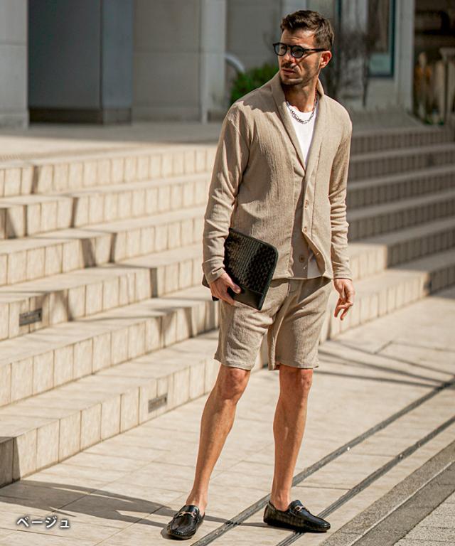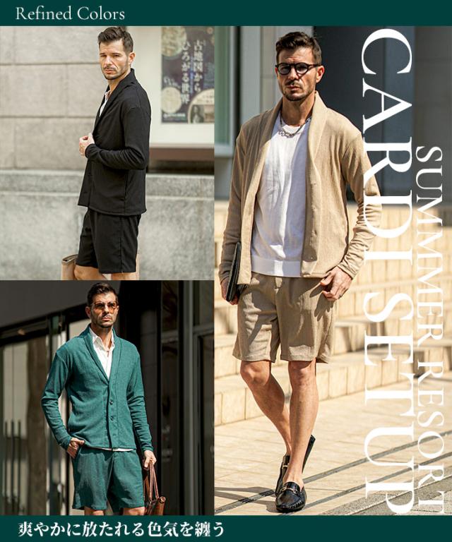 上下セット メンズ 夏 セットアップ メンズ ブランド 楊柳 ショールカーディガン メンズ 春 ハーフパンツ メンズ 夏 冷房対策 黒 ベージュ 涼しい 薄手 薄い 春 春服 春物 春夏 メンズファッション リゾート ちょいワル 新作
